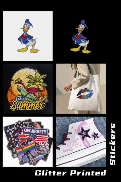 The pattern is printed on a special Gilltter substrate using dye-sublimation technology. Give stickers a Bling Bling effect.