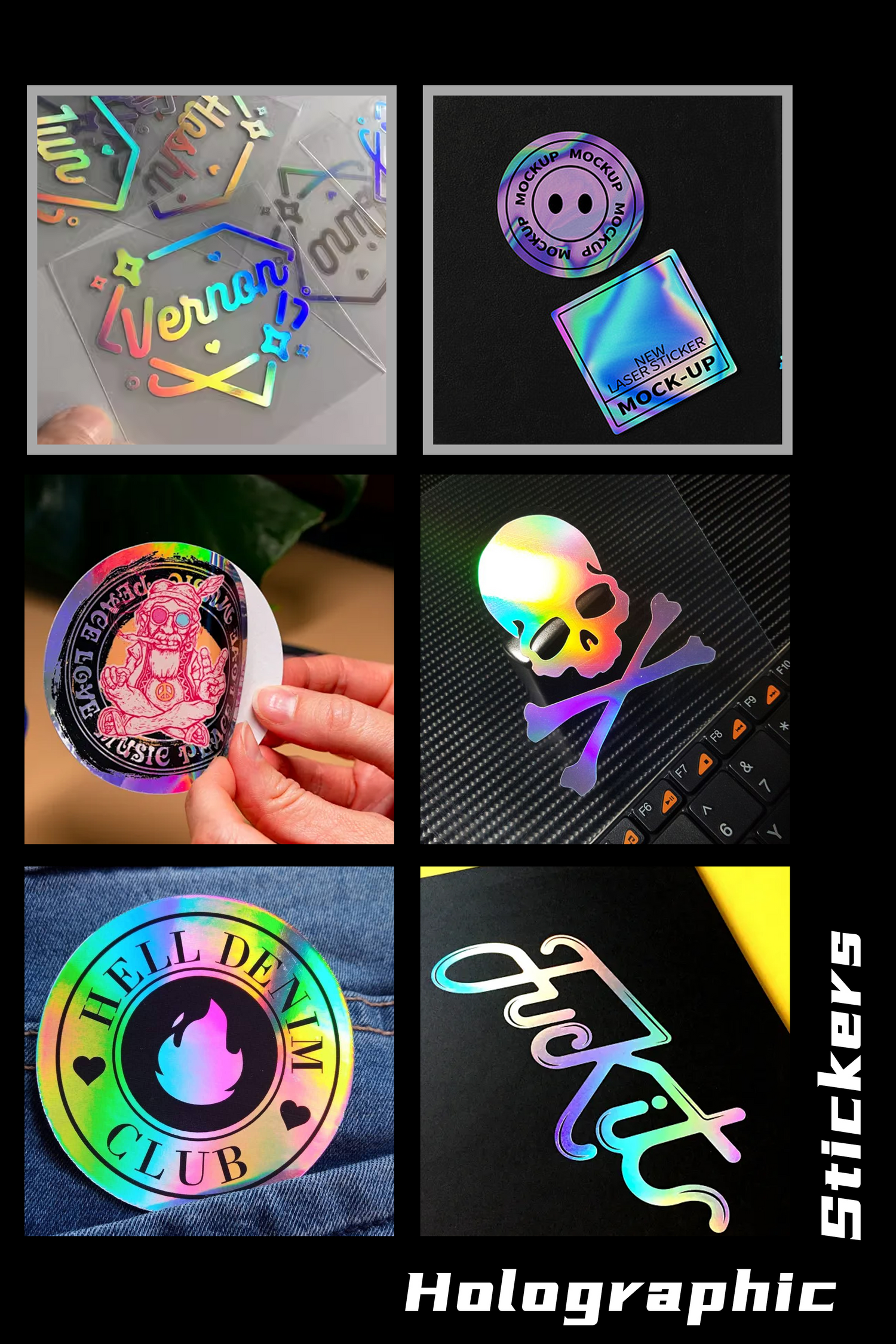 Eco-friendly UV ink is used to print various patterns on the PET film with laser effect, giving the sticker a holographic laser effect.
